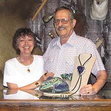 Stop by and meet Don Paonessa, prospector, miner, stone cutter (lapidary), silver and goldsmith and his wife Kathy Paonessa who is also an accomplished silver and goldsmith. Browse their huge inventory of mineral specimens, sterling silver and 14kt gold rings, earrings, pendants, bracelets, belt buckles, and much, much more.