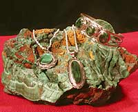 MALACHITE: With its prismatic crystals in magnificent hues of green only nature could paint to dramatically. FIRE AGATE: Alive with the brilliant colors of fire and captured in the only registered precious gemstone mined in Arizona.